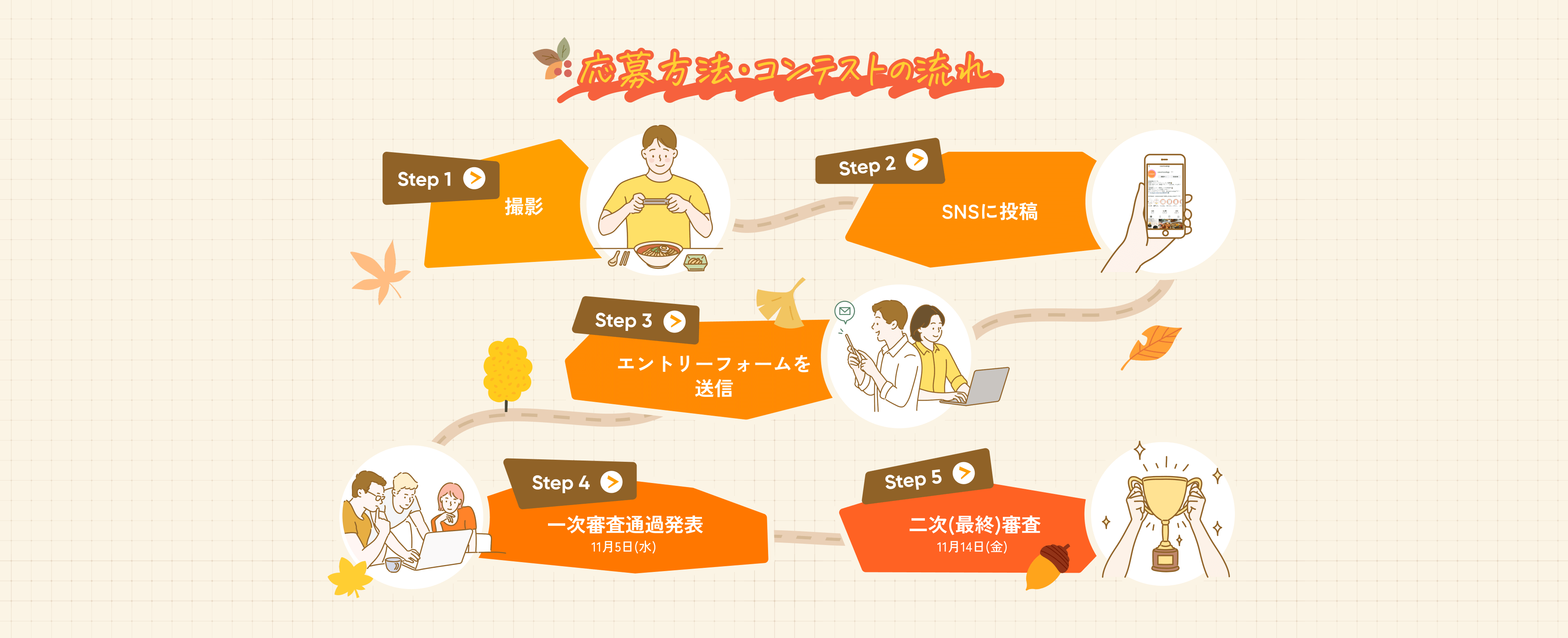 一次審査、二次審査の結果は、応募チームの代表者宛てにコンテスト事務局よりメールでご連絡します。