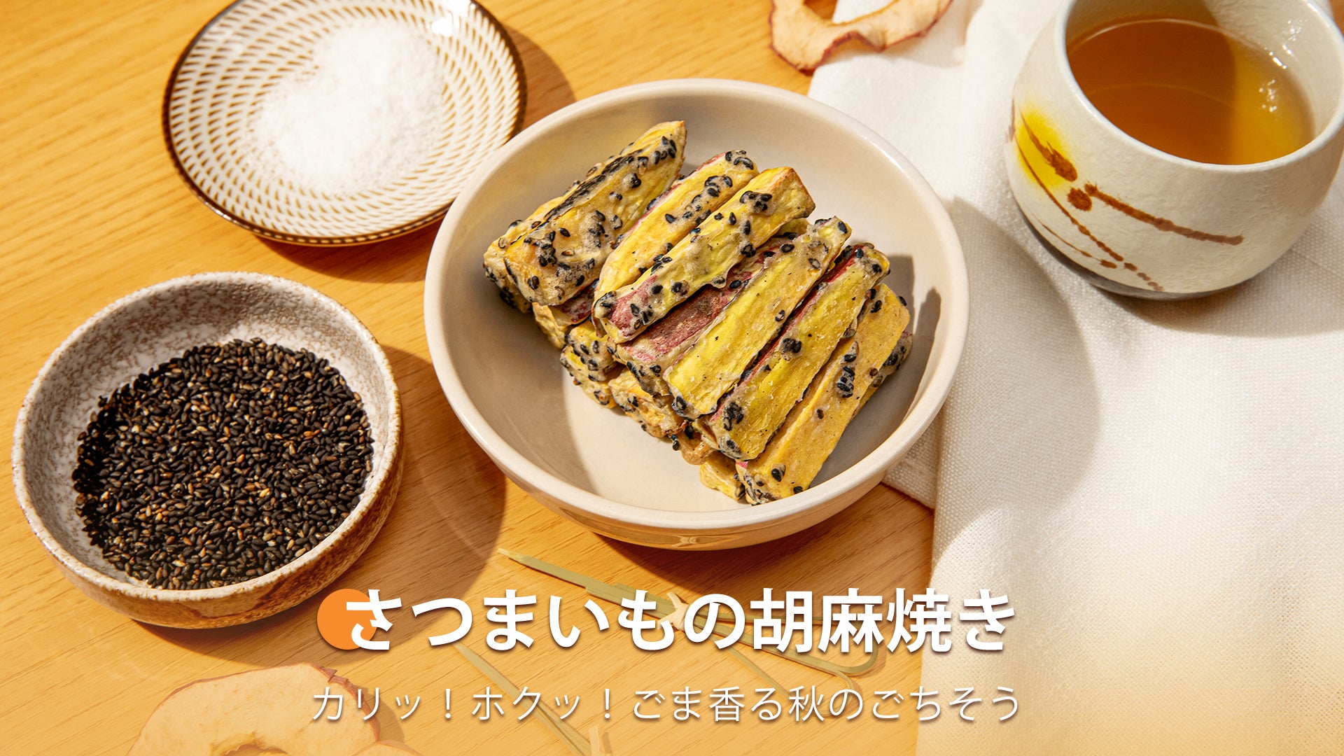 1.さつまいもは皮つきのまま5cm長さ、1cm角の棒状に切り、水にさらして水けをきる