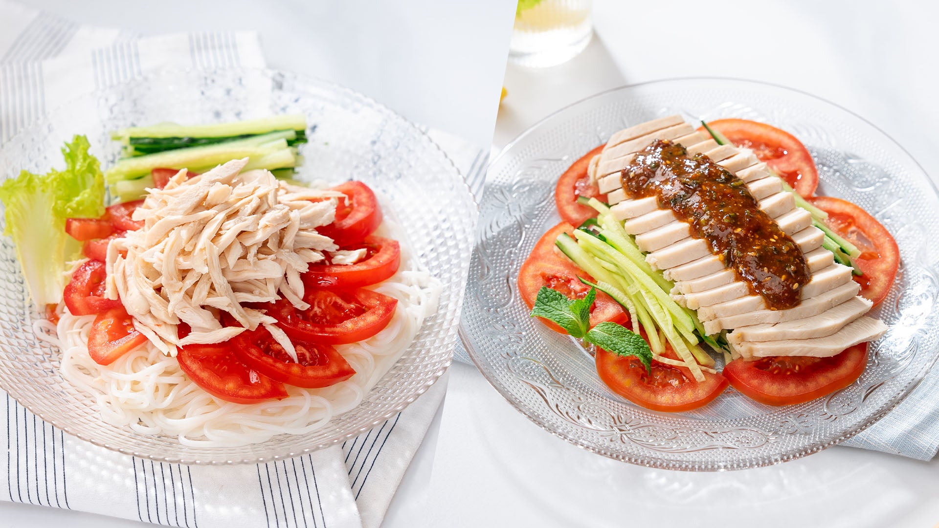 3. 棒棒鶏風にするなら、たれを混ぜてスライスした鶏肉とお好みの野菜にかけて完成!