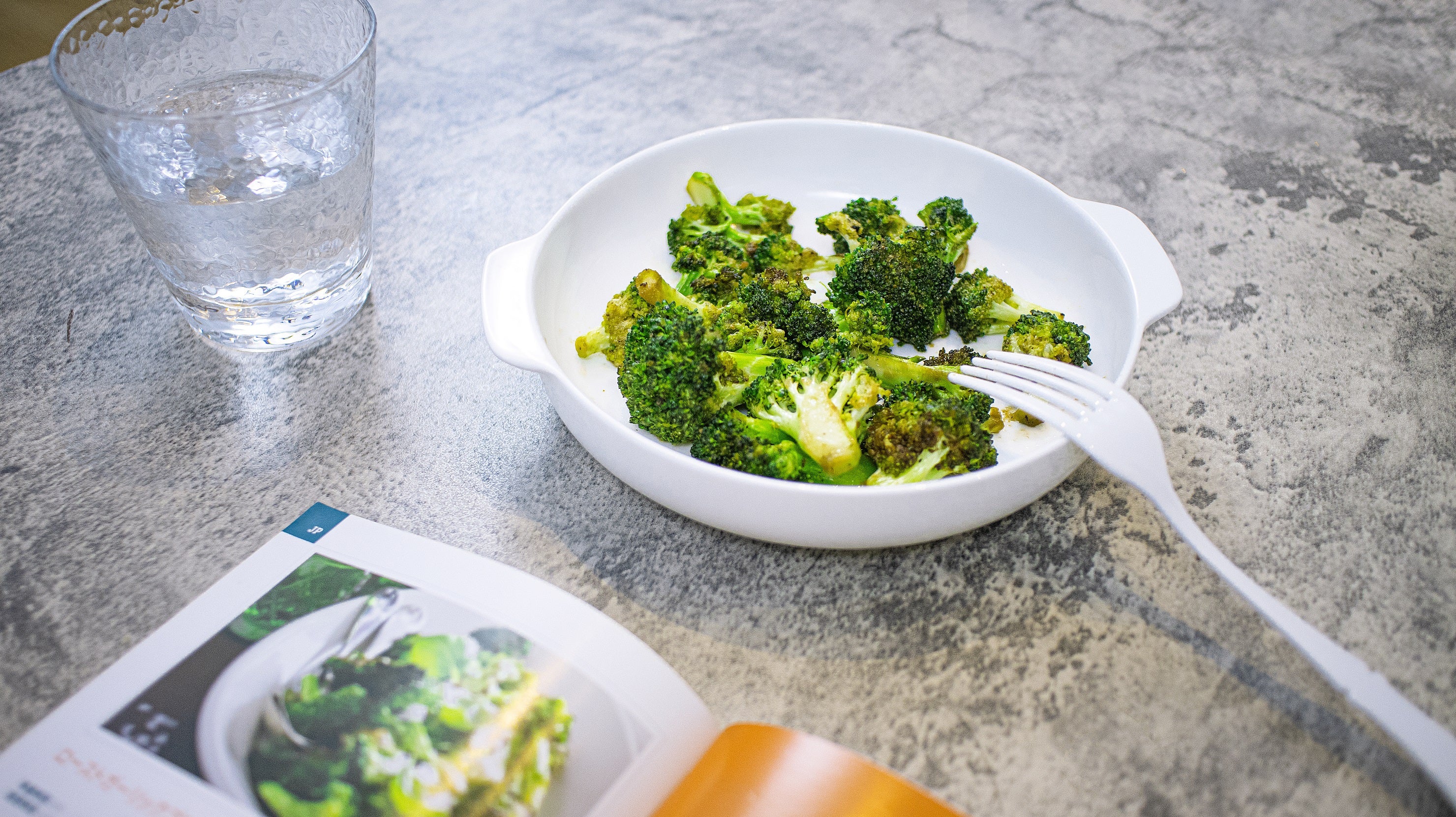 2 . カットしたブロッコリーにオリーブ油を振りかけ、まんべんにいきわたるまで混ぜ合わせます。