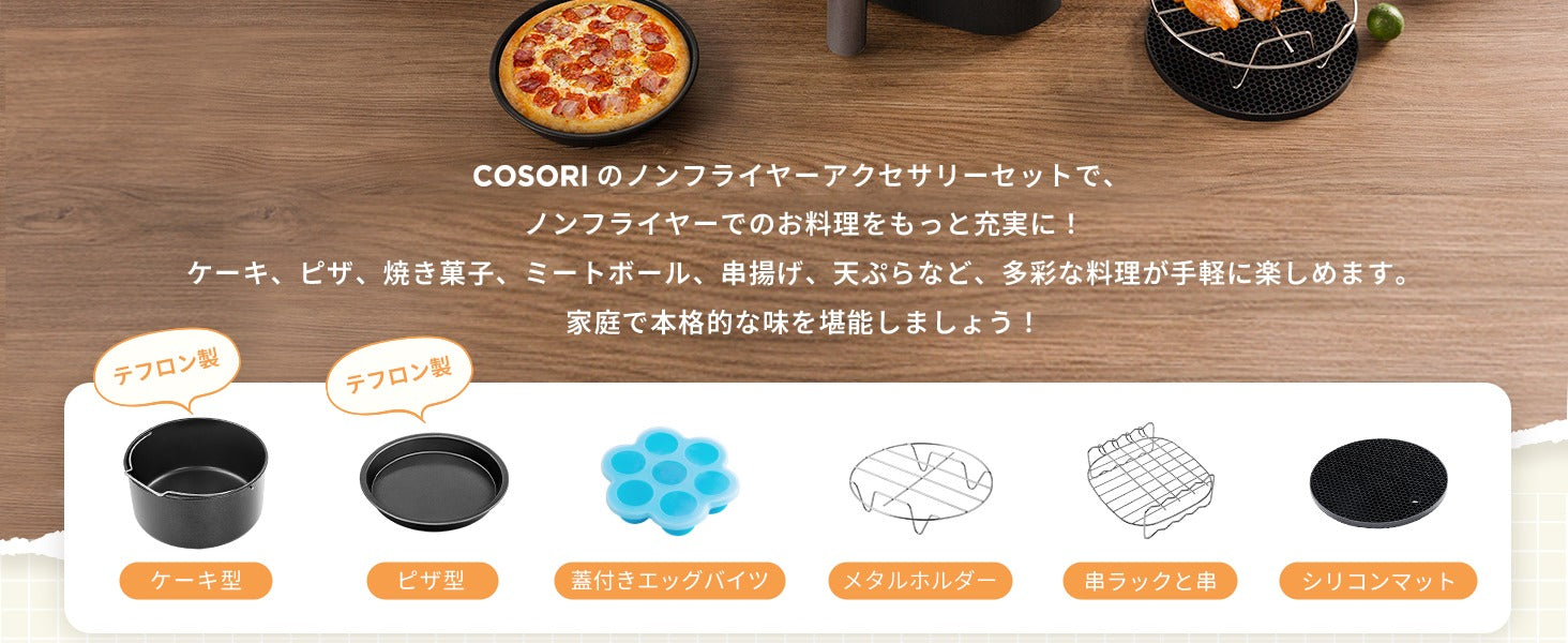 COSORIノンフライヤーのアクセサリーセットには何が含まれていますか?