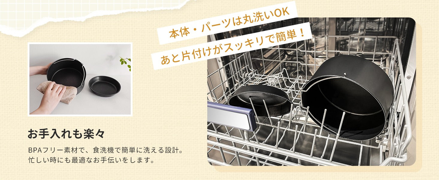 はい、すべての製品は食洗機に対応しています。ケーキ型とピザ型はテフロン製のため、手洗いの場合、金属タワシを使わなく、スポンジなどをご使いください。