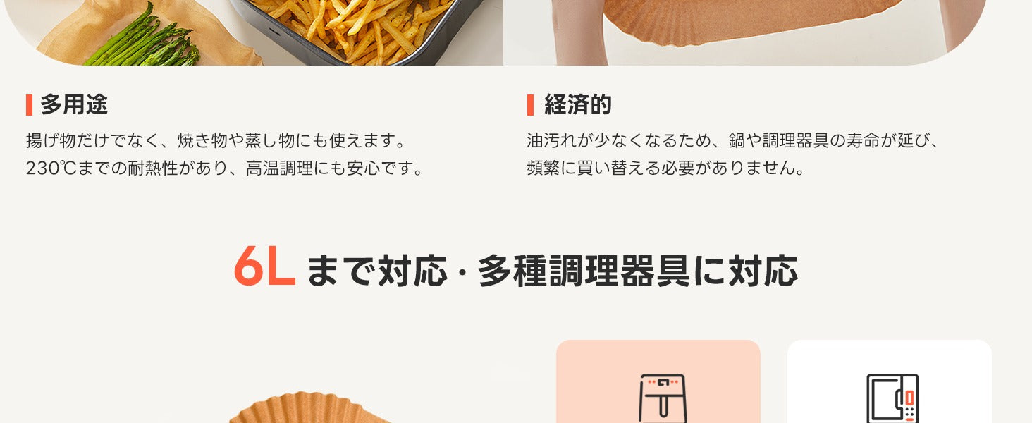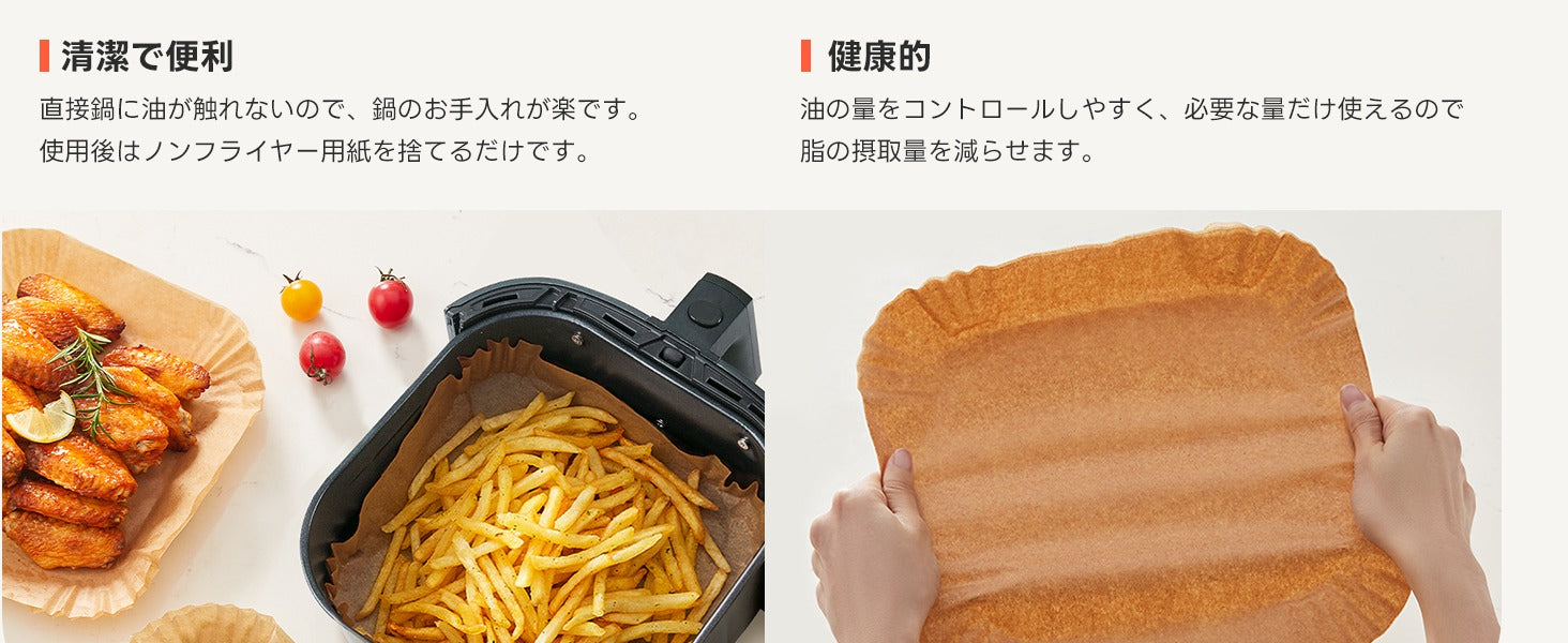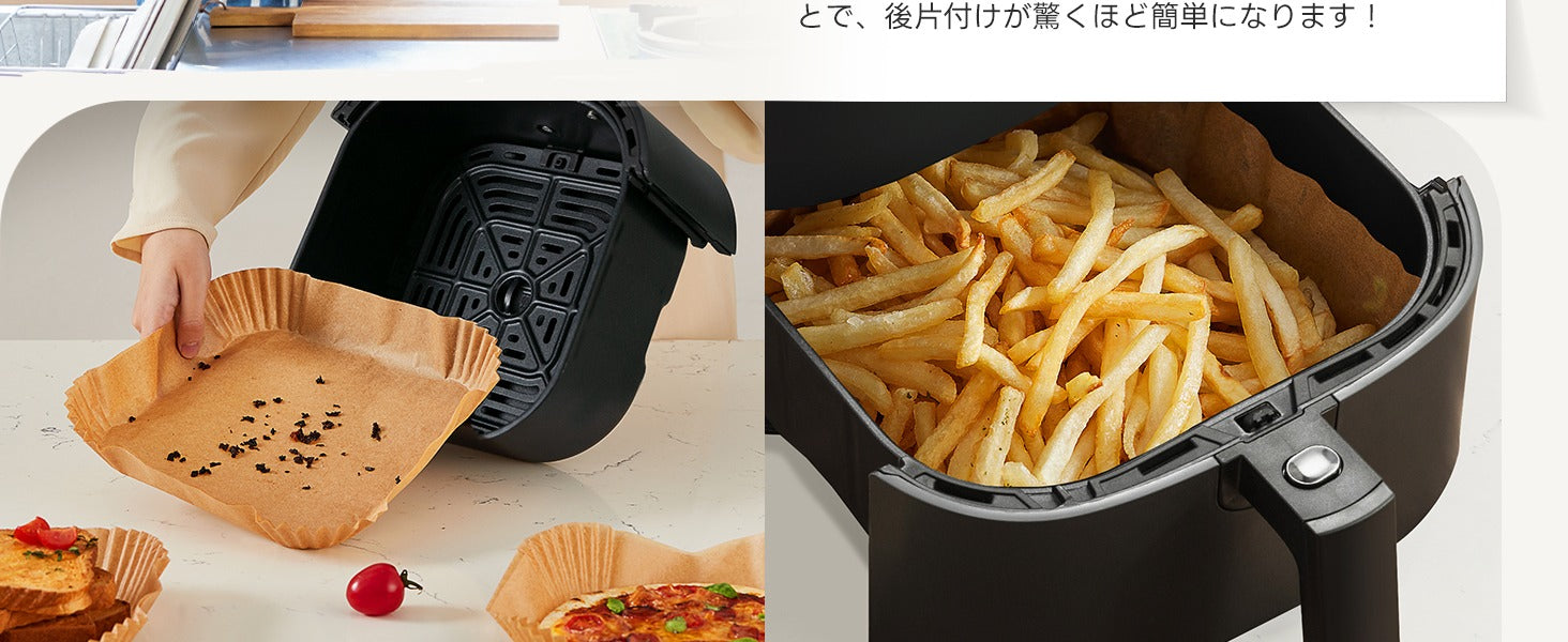 ノンフライヤー用紙の有無にも関わらず、どちらでも調理は可能です。