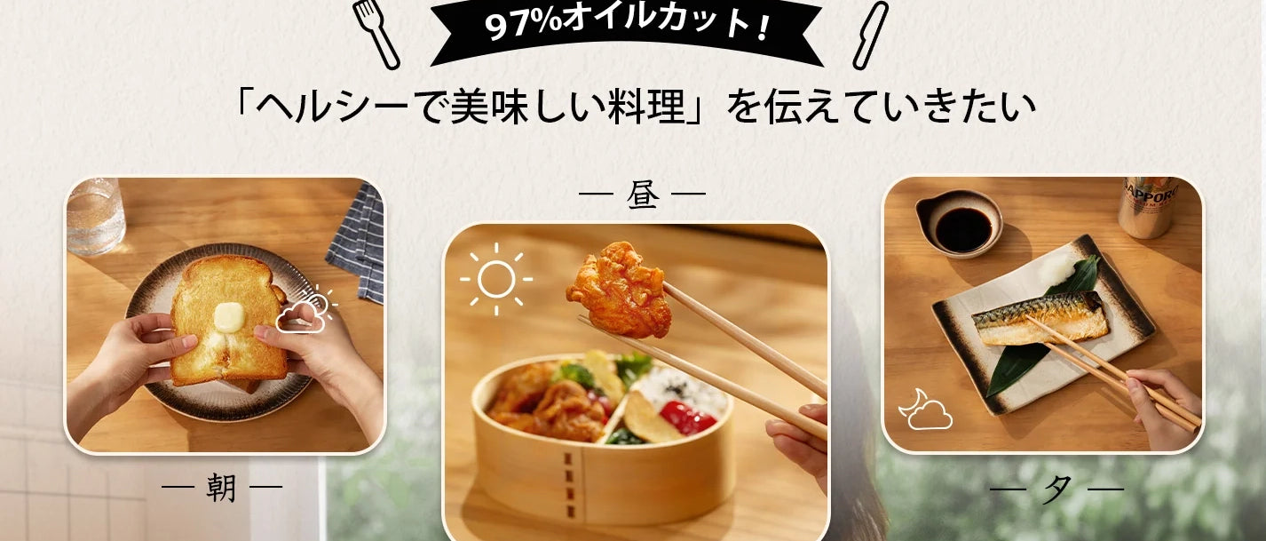 毎日の自炊がもっと手軽に、もっと楽しく。一人暮らしにぴったりのサイズで、揚げ物も温め直しも、ボタンひとつで簡単調理。