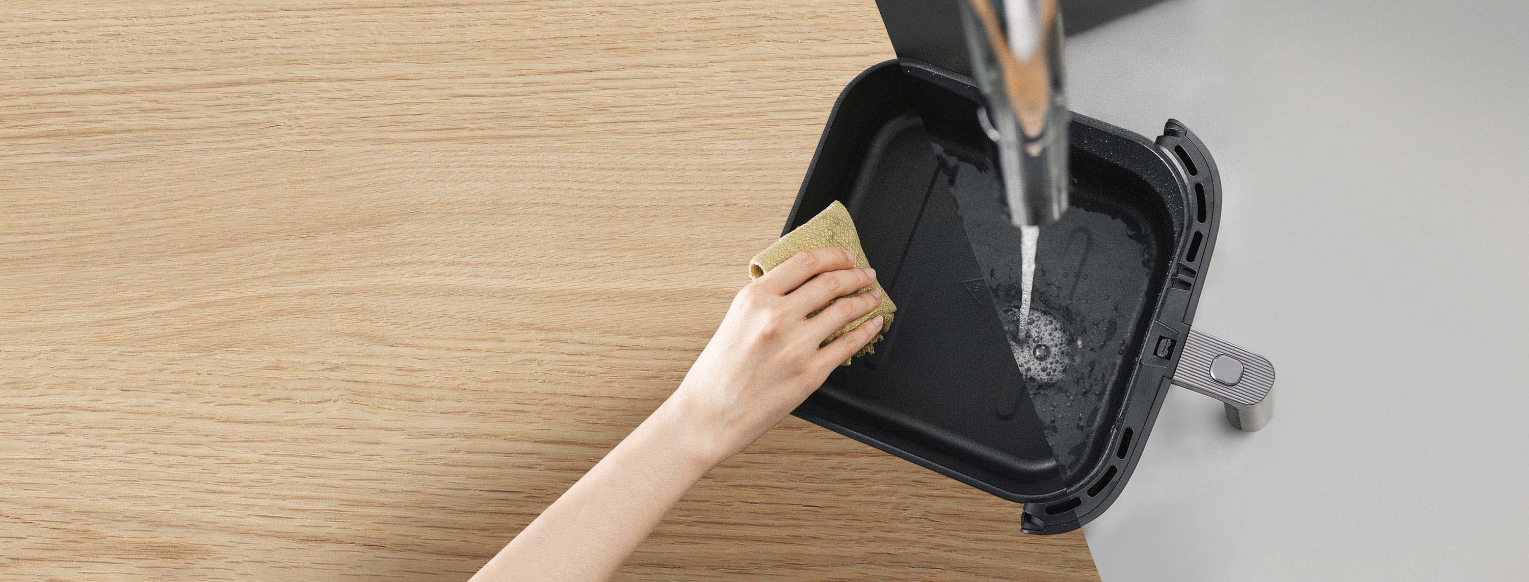 DCモーターを搭載することにより、ファンのスピードを5段階に調節できるようになりました。温度管理の進化により調理の幅が広くなりました。旧型の熱風装置より小型化になり、調理バスケットのスペースをMAXに。優れた庫内の熱風循環により調理中に食材をひっくり返す手間を省きました。最新テクノロジーでキッチンのルーティンを革新しましょう!