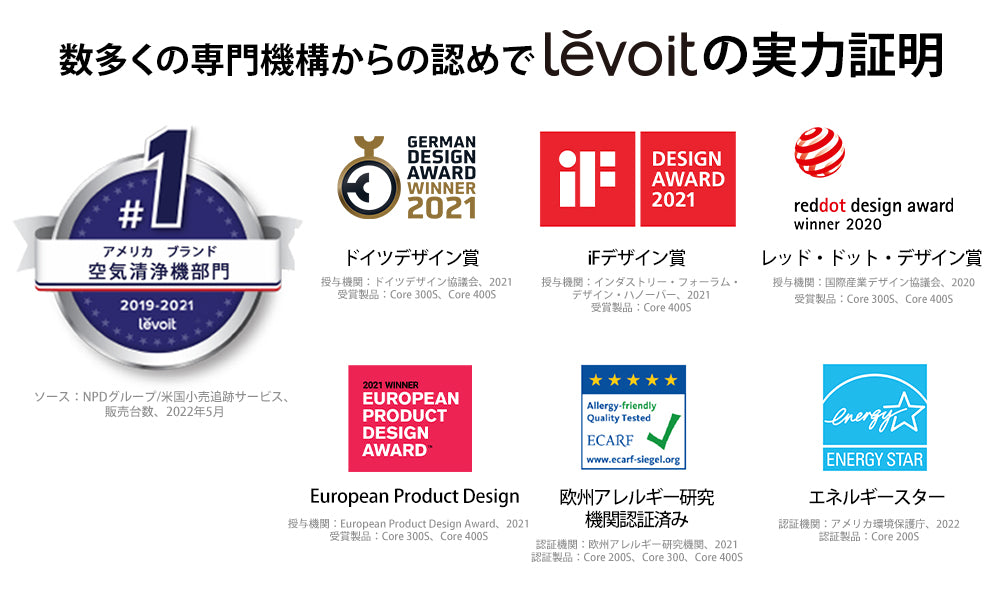 「Levoit(レボイト)」はアメリカに設立した小型家電製品メーカーVeSyncの傘下の季節・空調家電のブランドです。グローバルで事業を展開、累計出荷台数が900万を突破し、アメリカAmazonで第1位の実績も獲得しています。