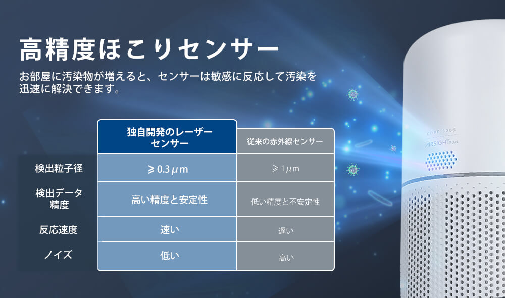高精度ホコリセンサーのAirSight Plus技術で、空気の汚れをリアルタイムに検知し、